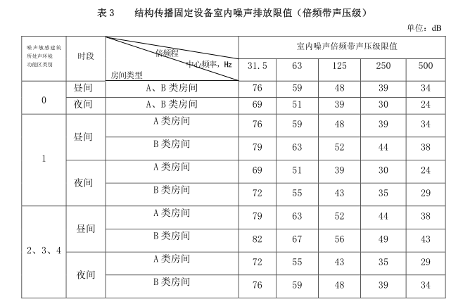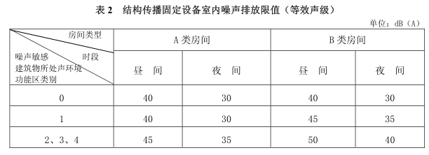 4.2 結(jié)構(gòu)傳播固定設(shè)備室內(nèi)噪聲排放限值